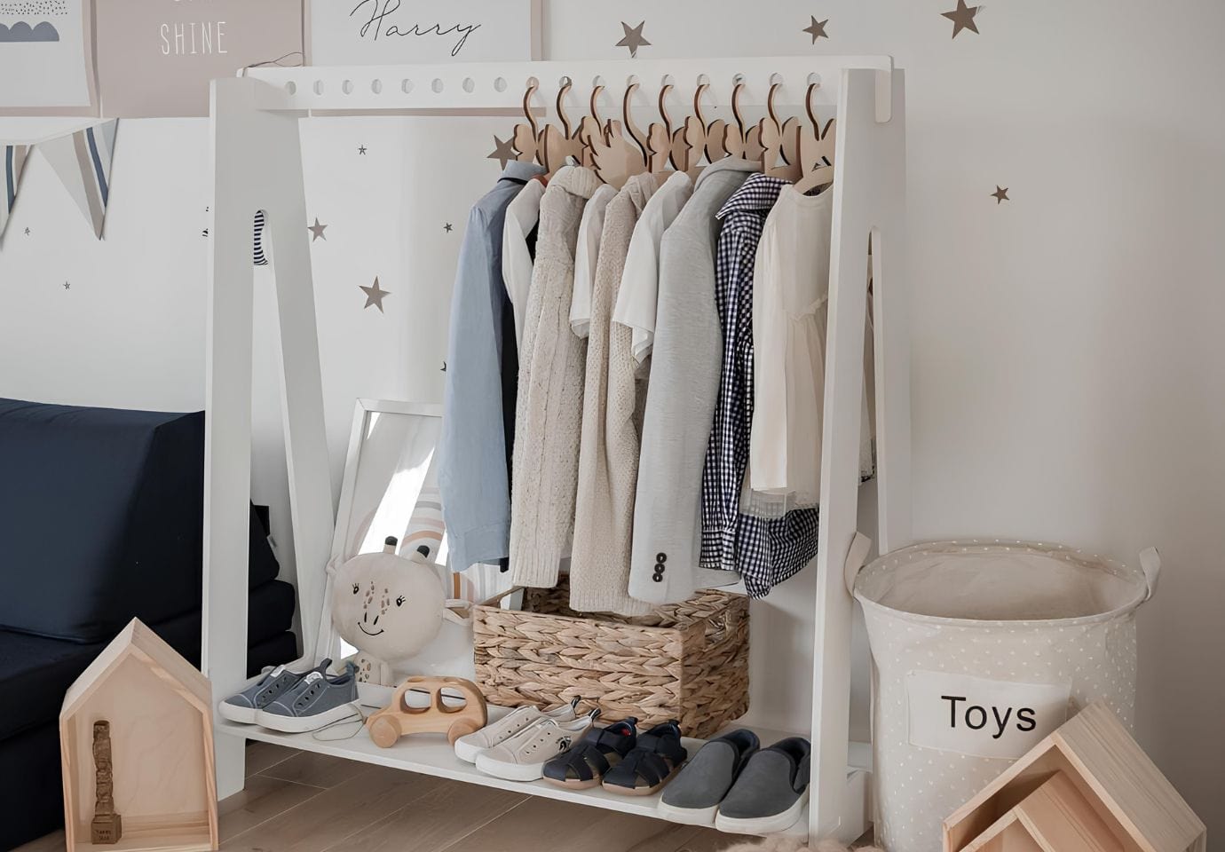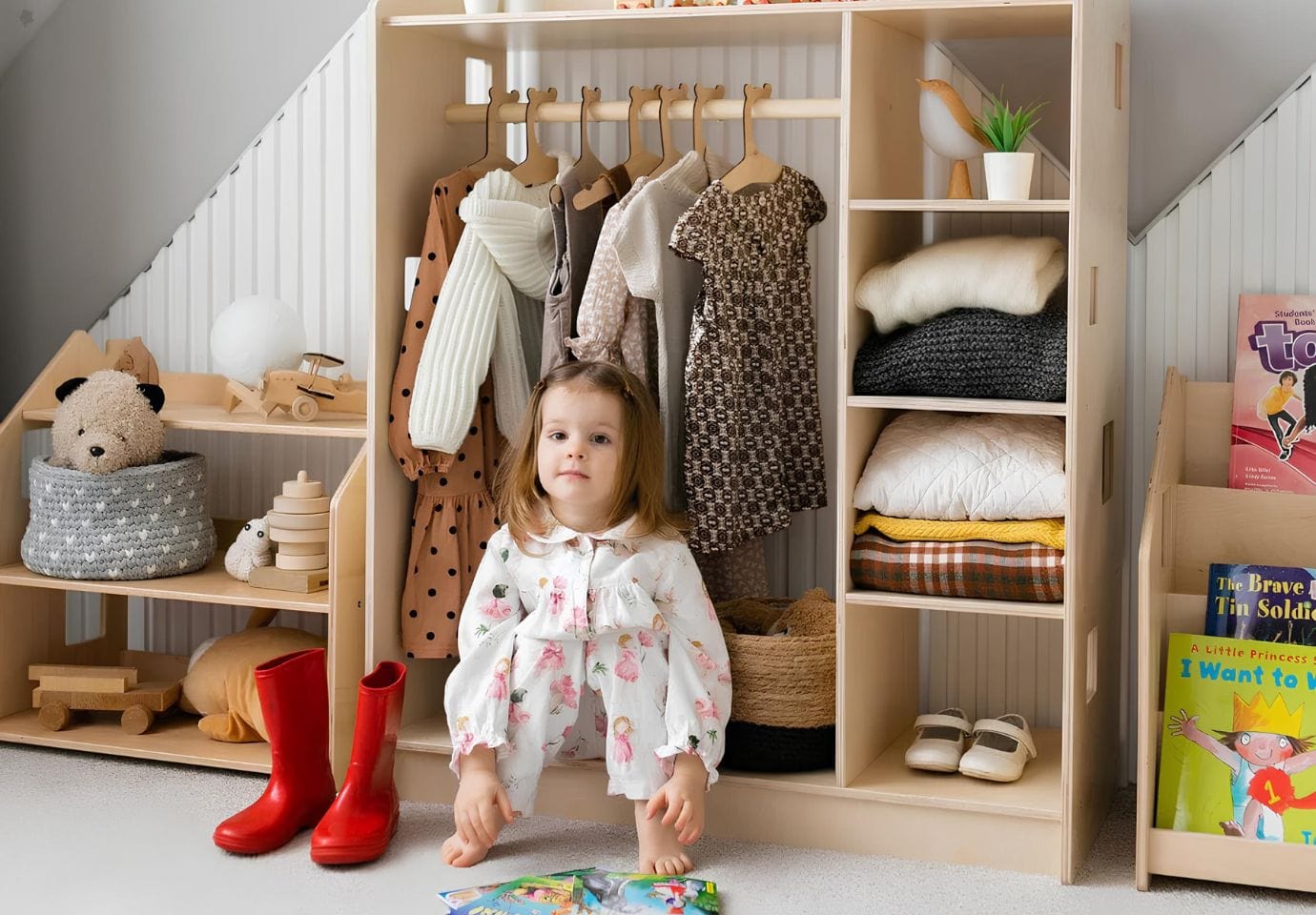 Penderies Montessori : Nos penderies sont à hauteur d'enfant, permettant aux petits de choisir et ranger leurs vêtements en toute indépendance. Leur design épuré et fonctionnel s'intègre harmonieusement dans la chambre, offrant un espace dédié au développement de l'autonomie vestimentaire.