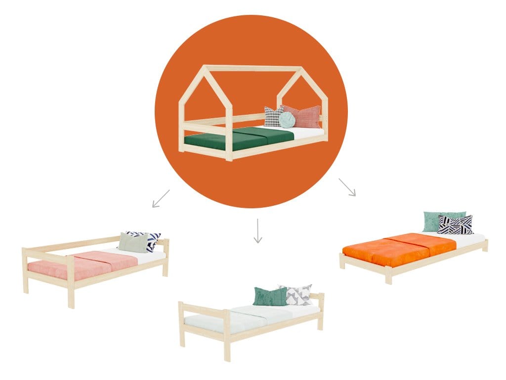 Nos lits Montessori sont conçus pour offrir une modularité maximale et s’adaptent aux besoins de chaque famille. Chaque modèle permet de configurer le lit selon vos préférences, en fonction de la croissance et des besoins de votre enfant.