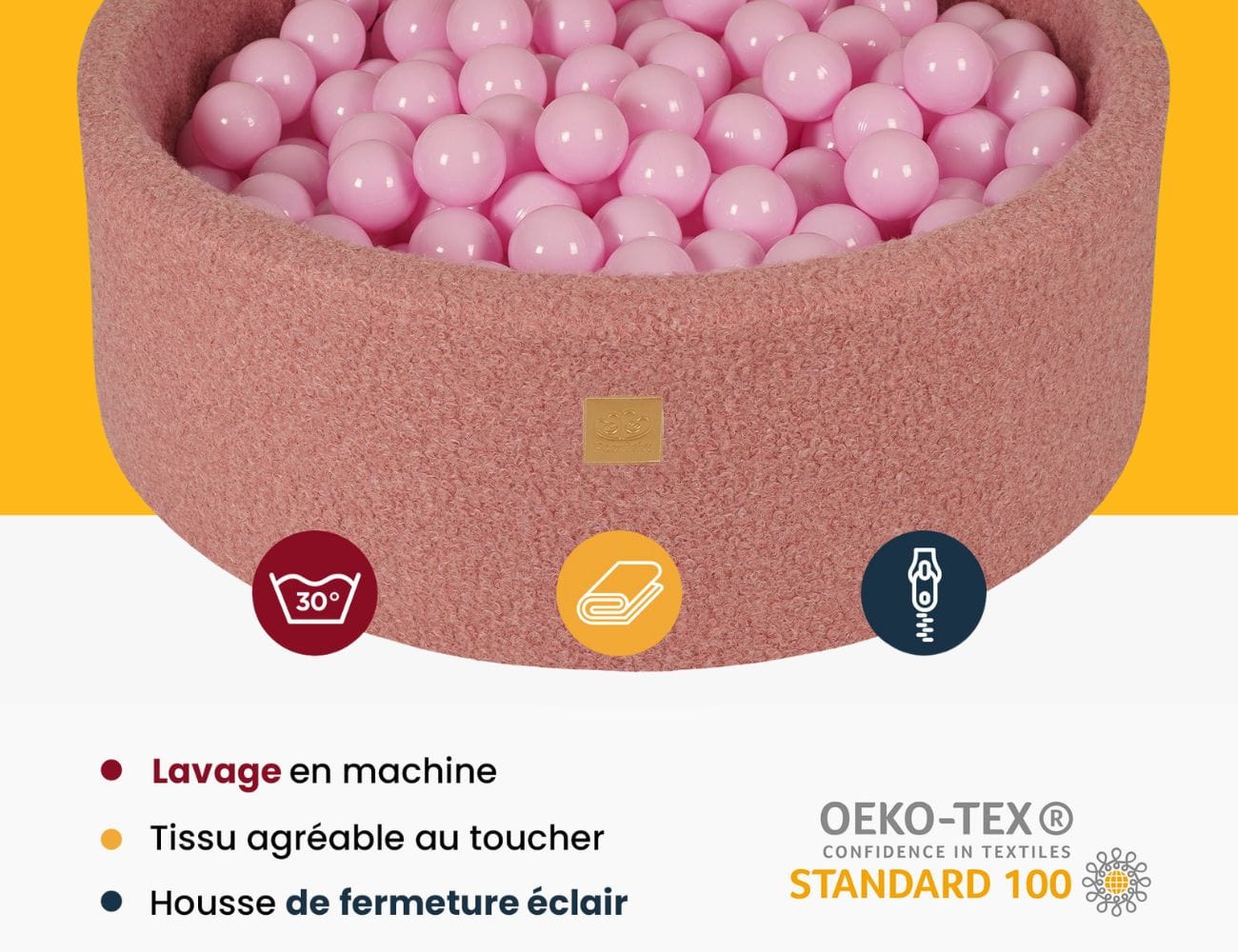 Matériaux doux et sûrs : Fabriquée à la main avec des matériaux certifiés Oeko-Tex, notre piscine à balles garantit un environnement de jeu non toxique et sans danger pour votre enfant.